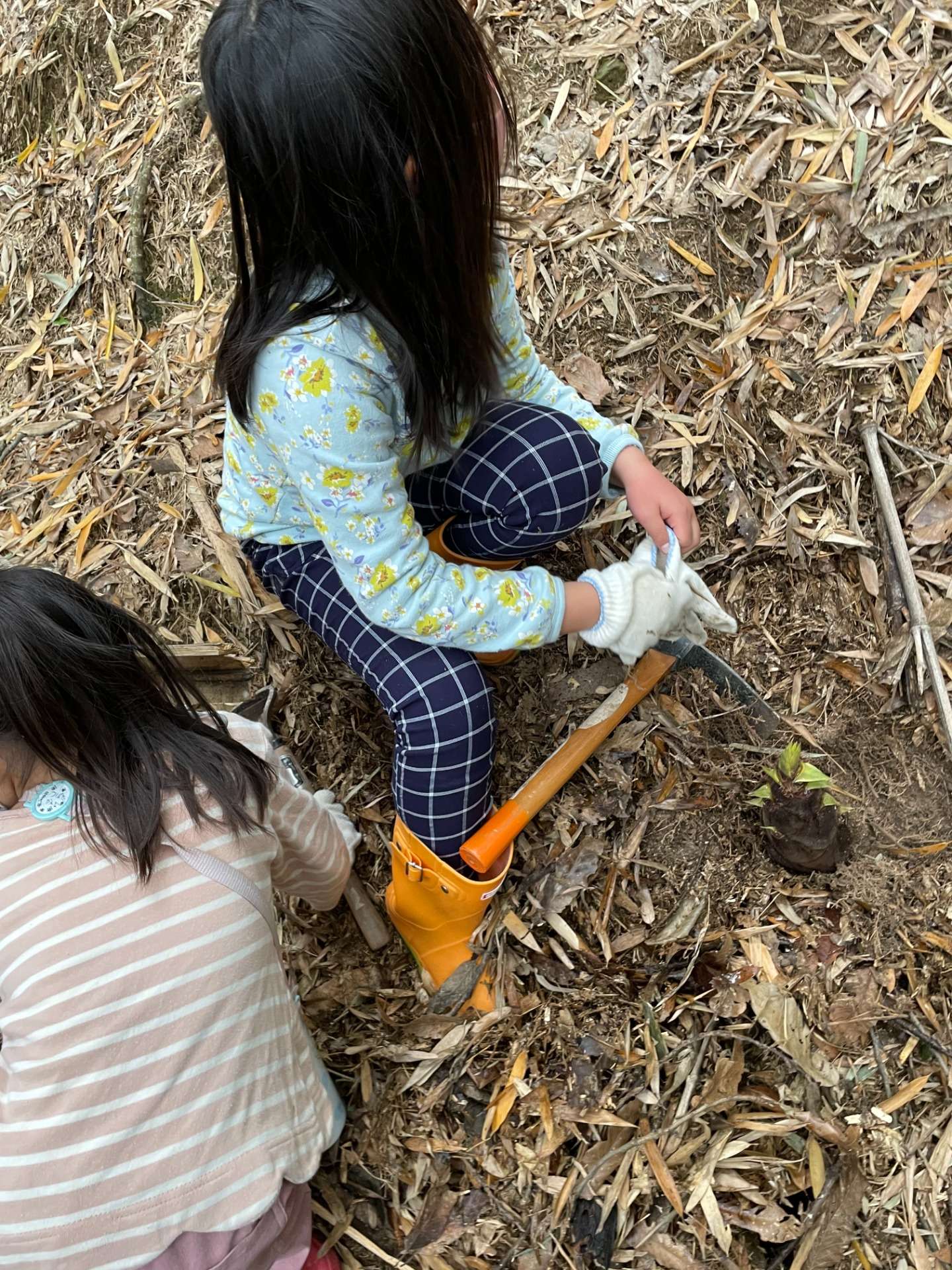 普段は虫が大の苦手な娘達ですが、この季節になると筍堀りにはついてきます。