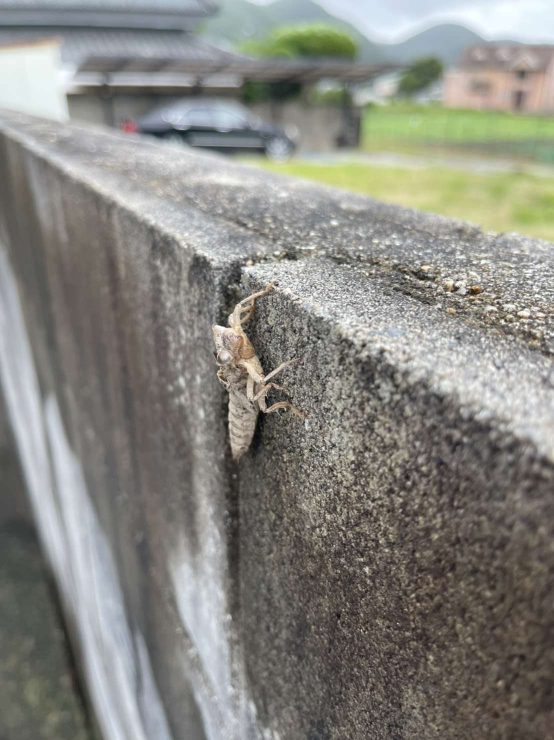 弊社お取扱いの物件のブロック塀にヤゴの抜け殻がありました。