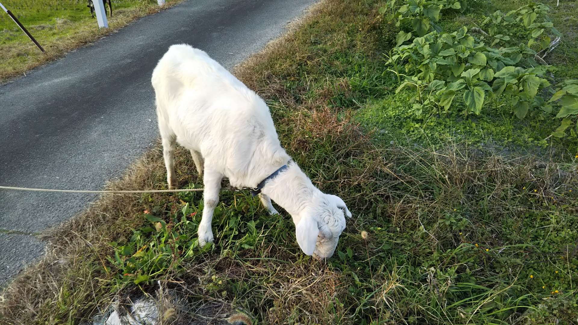 私が見かけたこちらのヤギも、3頭とも夢中になってムシャムシャと草を食べていてかわいかったです。