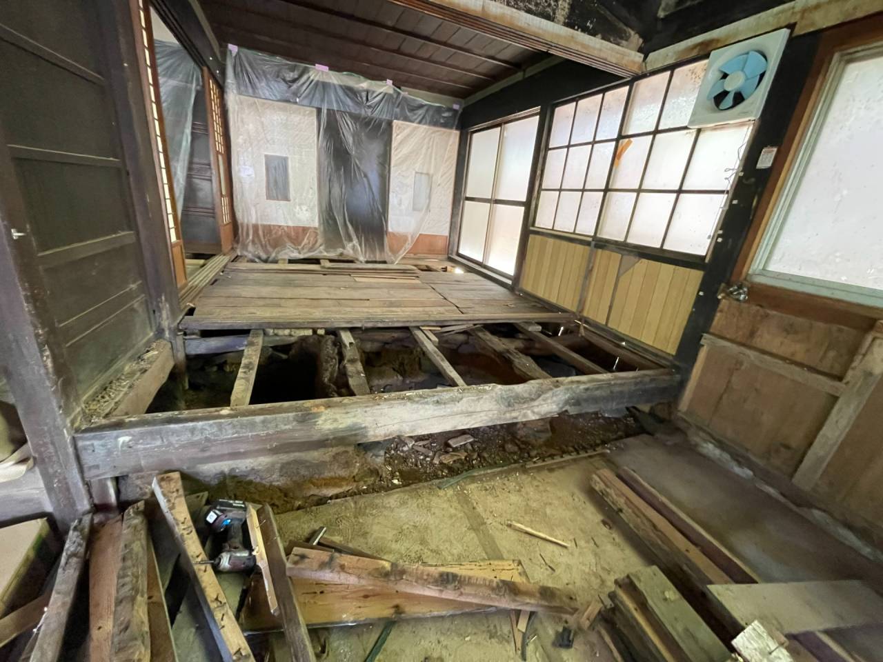 和室の天井・キッチンの天井も壊し、梁を見せていきます!![]()