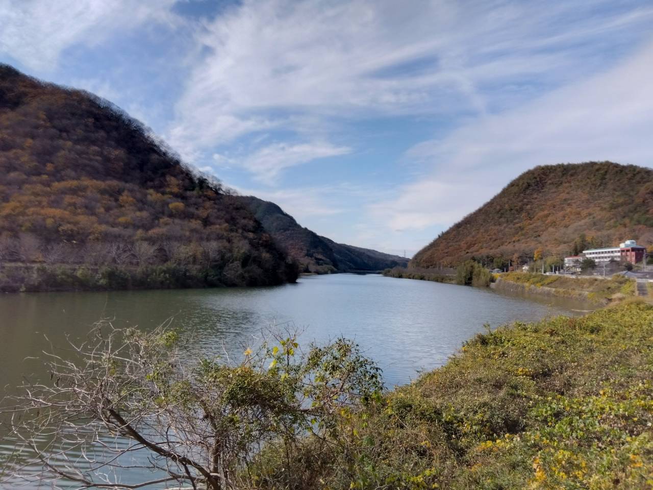中島さんが以前に紹介した岡山県和気郡和気町の棚田はとっても風情があり私も大好きなのですが、その棚田から下りて国道374号線を走っていると、また奇麗な景色が現れました。山と川の穏やかな景色ですが、とても癒されました。