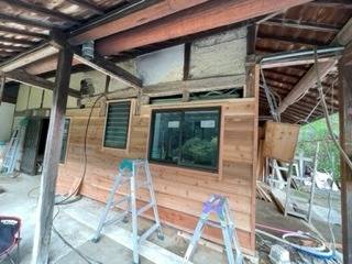 リノベーション工事のご紹介です! 2022/12/12 今週は、外壁の工事の様子をご紹介します。 サッシ下地 木材を使って、水平に窓が収まるように、下地をします。 サッシ取付 下地の上にサッシをはめ、ビスで固定します。 外壁材貼付 サッシを取り付けた後、座板を使って、鎧貼りにしました!窓の周りは、45*45の材料で、鳥居のような形にアレンジされています。 外壁 安価な座板を使って鎧貼りをすることで、コストを抑えました。鎧貼り用の実のある材料や、ササラ竿がなくても、いい雰囲気になりました~✨