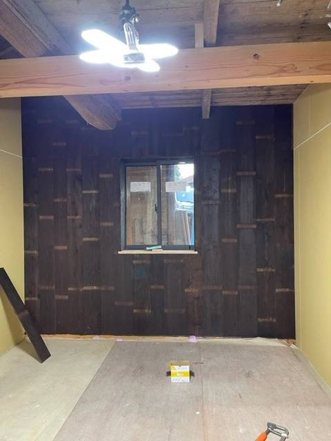 今回、塗装や塗り壁は、施主さん自身でされる予定です!板に、竿の日焼けの跡があるので、また塗装したら、雰囲気変わりそうです!!