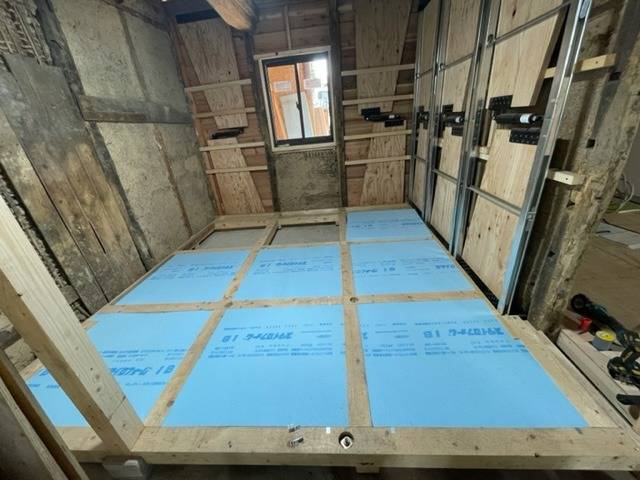 床組・断熱・床貼り・壁の順で進めていきました。