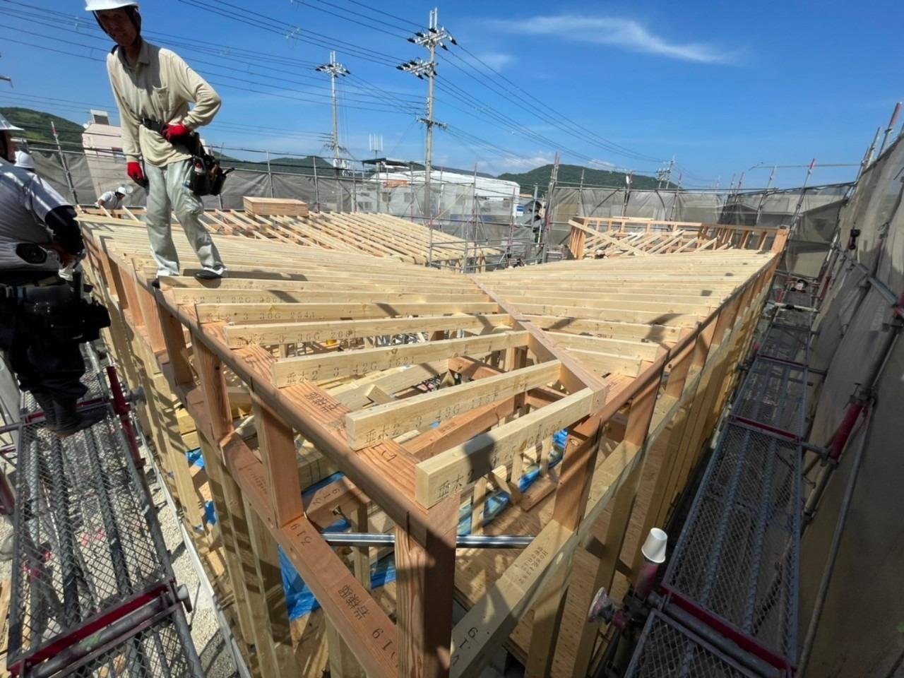 工場でのプレカットの精度も良く、大工さん達もスイスイと組んでいってくれております☆