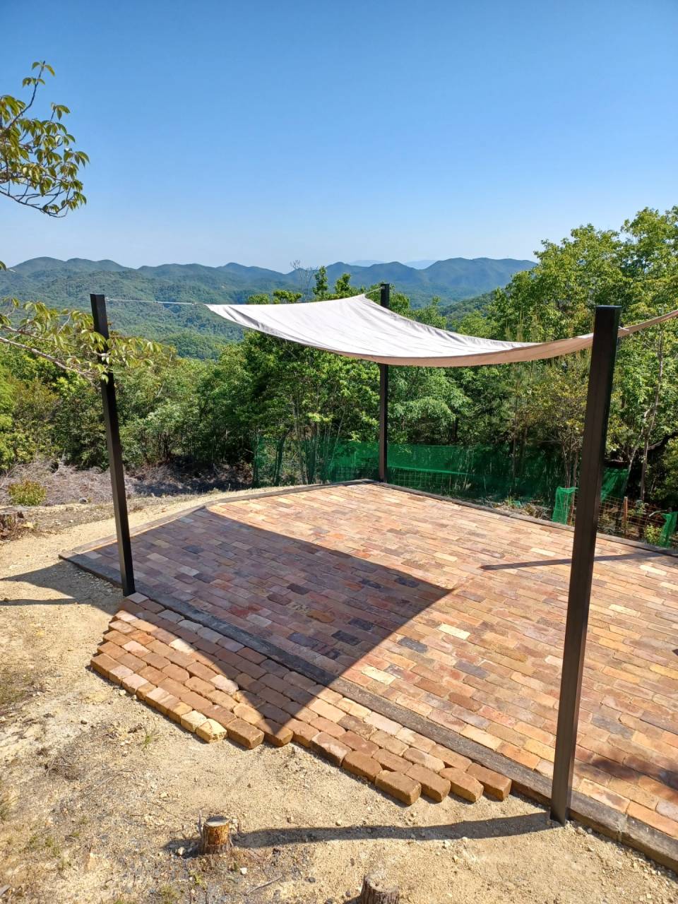 エクステリア工事のご紹介です♪ 2023/06/14 BBQスペースの工事のご紹介です♪ 有限会社 スローライフの工務部です❕ 別荘地のBBQスペースの工事のご紹介です☆彡 耐火レンガを敷いてコンロを作成していよいよ日除けの タープを取り付けてきました🎵 これで子供たちのプール遊びも楽しんでもらえると思います💪 夏休みがたのしみですね(^_-)-☆