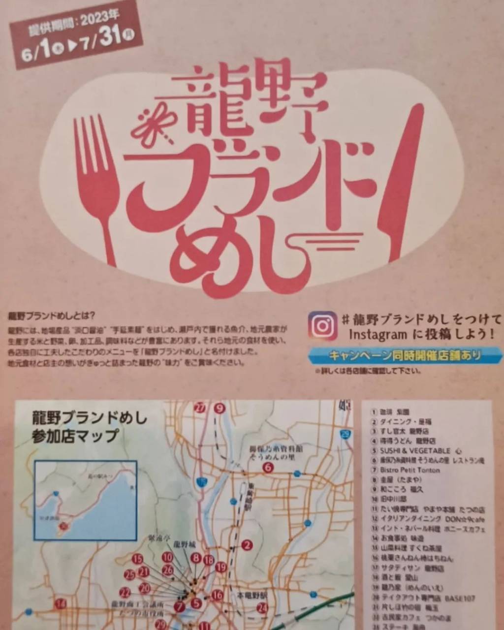 たつのでは、6月1日から地元のお店30店舗が参加されているイベント、「龍野ブランドめし」が開催されています。