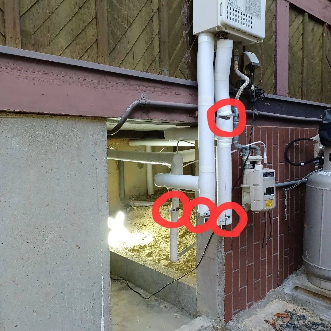別荘ではよく、給湯器や電気温水器などだけでなく、水や湯の配管についていることもあります。どこにあるか探して、水抜きしておきましょ〜