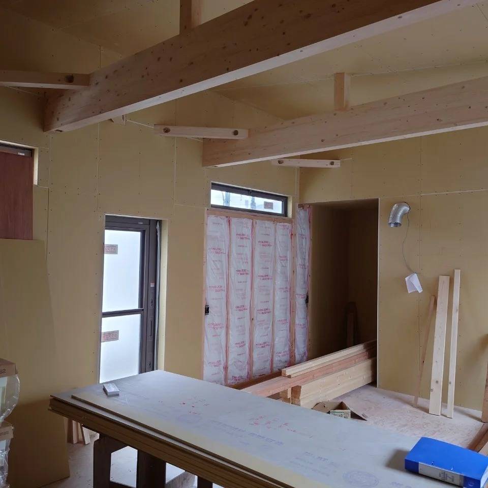 新築工事のご紹介です(^^)/ 2024/01/17 新築工事のご紹介です(^^)/ LDK編 スローライフの工務部です♪ 本日も新築工事のご紹介です.ᐟ.ᐟ 昨日に引き続きリビングが石膏ボードが張れてきて部屋らしくなってきました✨ この後、キッチンを設置して内装工事に入っていきますが他の部屋もご紹介していきます💪