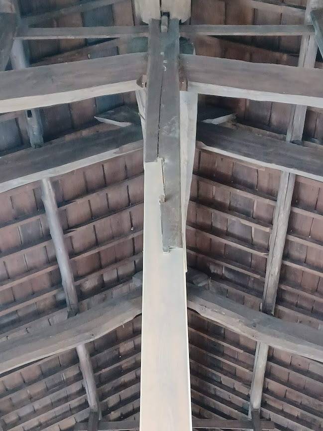 明治時代の醬油蔵をリノベーションした、たつの市営駐車場にある「下川原蔵あかね」です。柱は傷んだ部分を切って新しい木材で継ぎ足す「根継ぎ」修復されています。