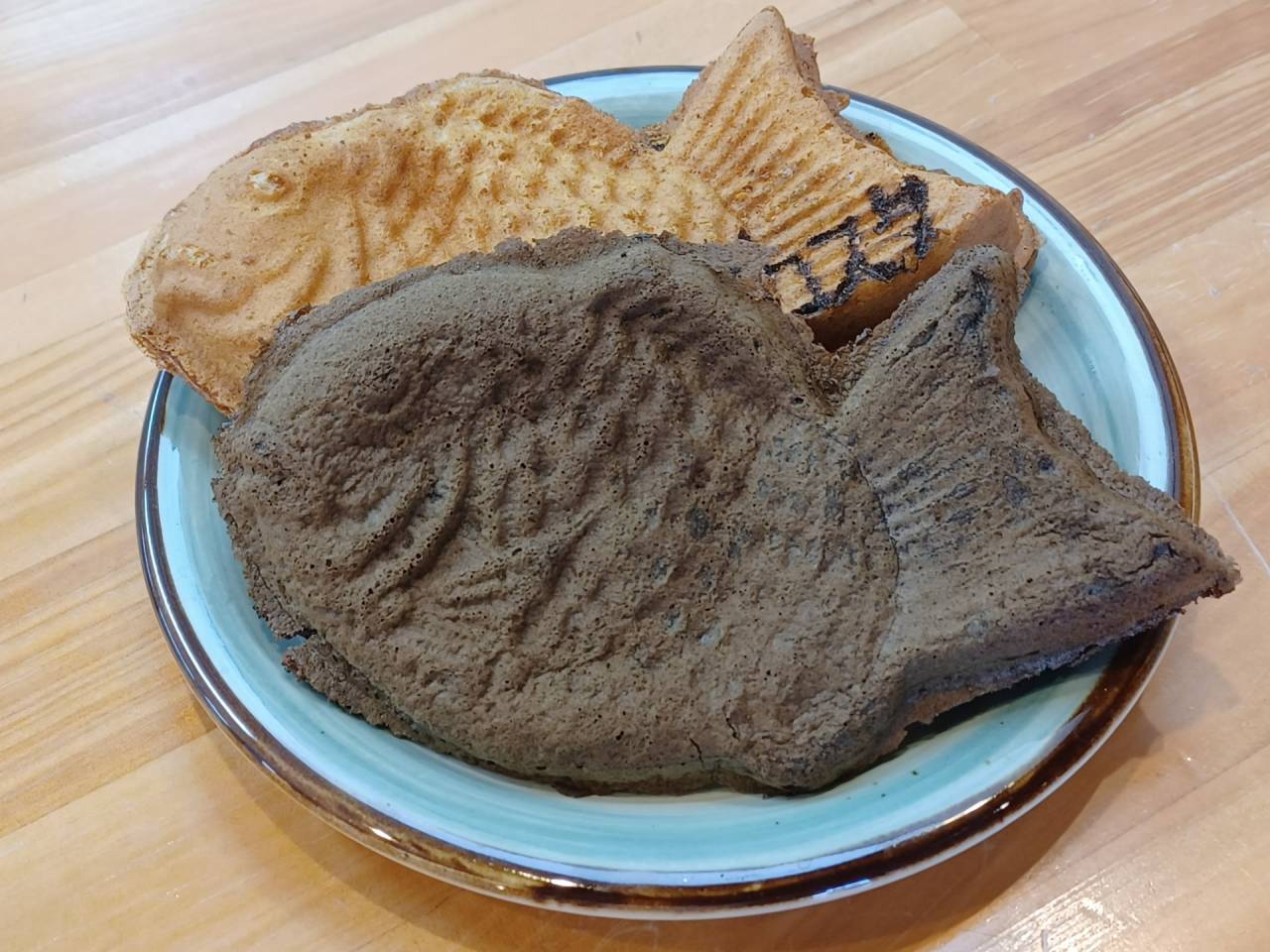 黒いたい焼きは、生地にたつのの名産の醤油を練り込んだ「たつのブラック」です。醤油の香ばしい風味と甘塩っぱさクセになるおいしさです。