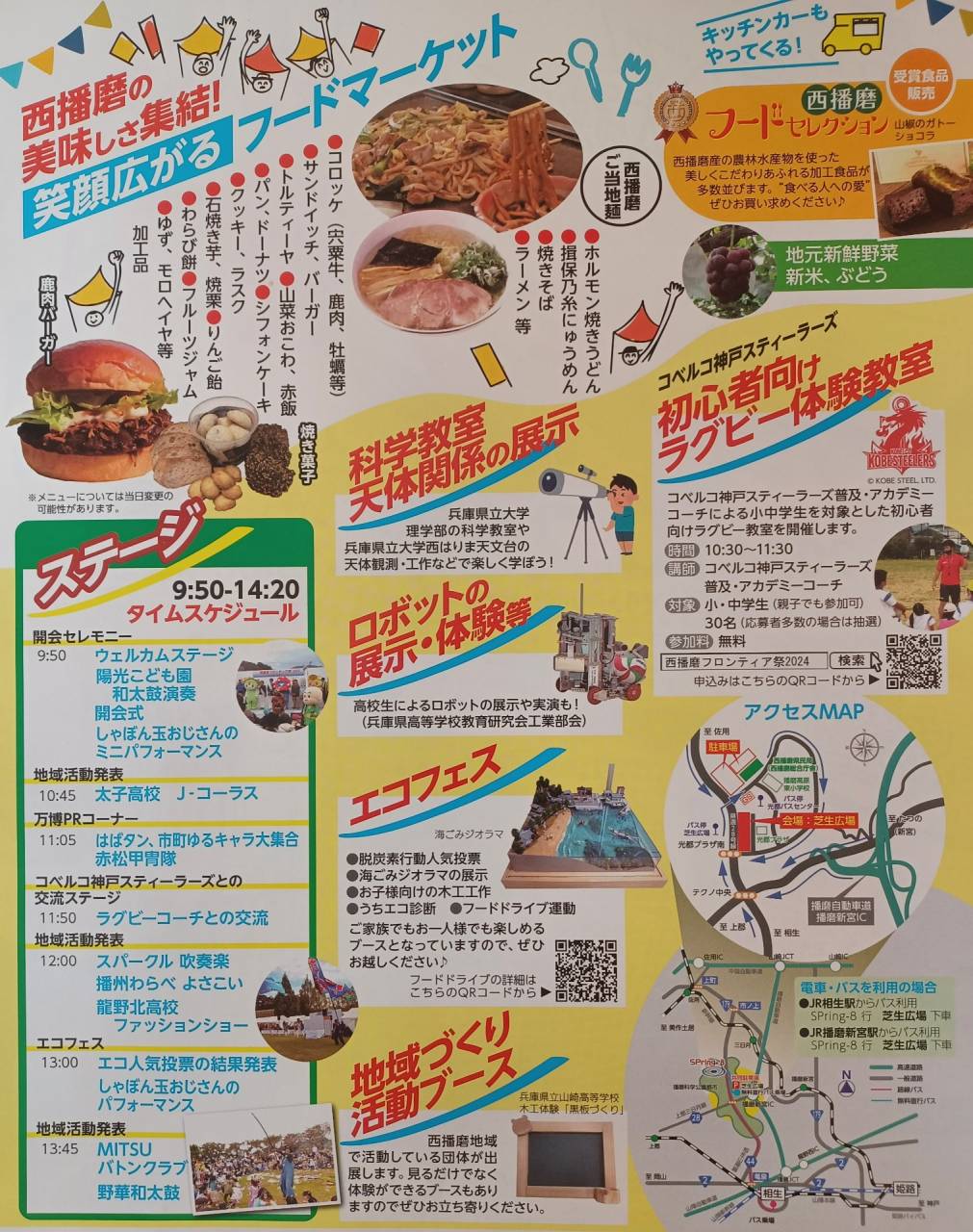 10月26日㈯に播磨科学公園都市芝生広場で「西播磨フロンティア祭り2024」が開催されるそうです。